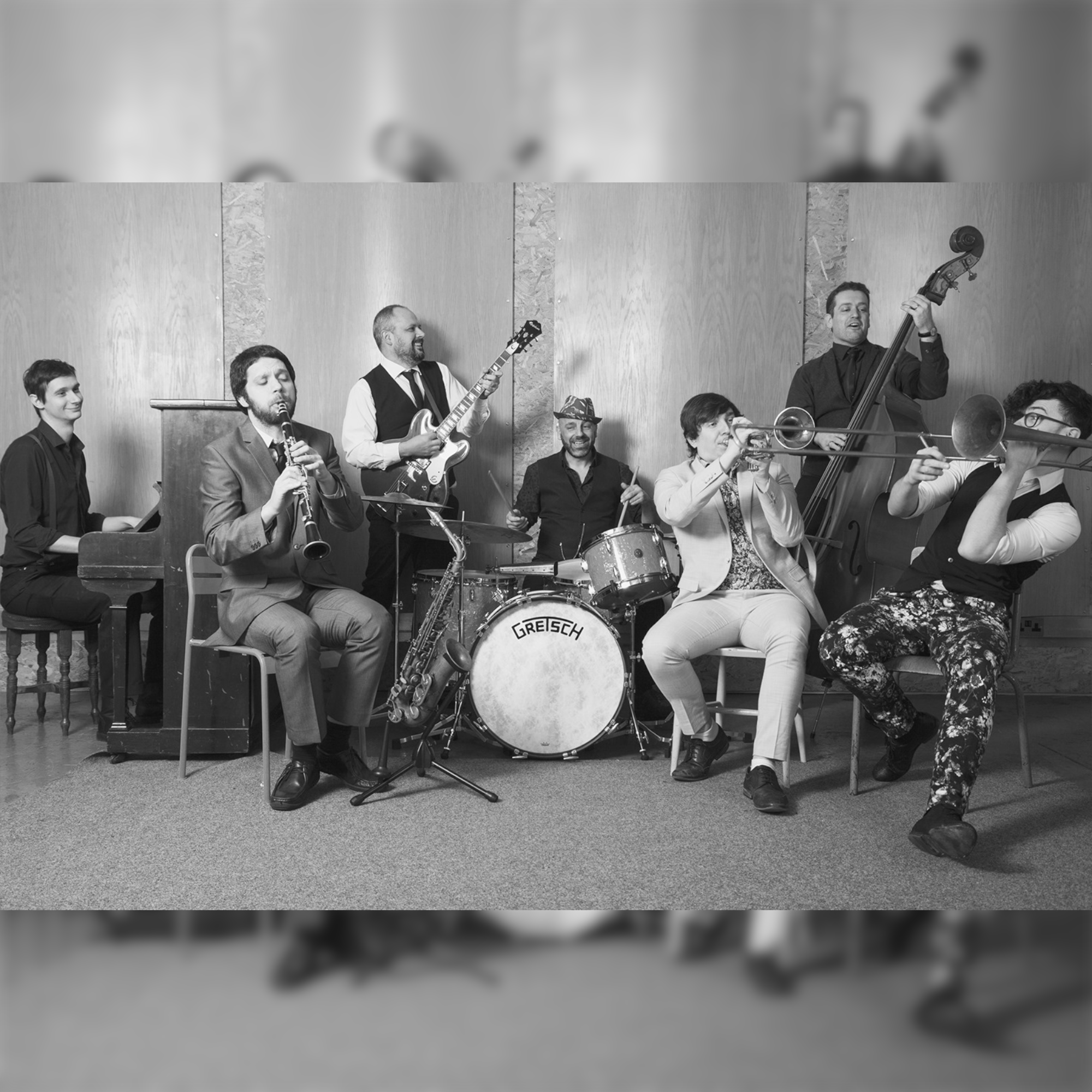 Line Up: James Paylor (Double Bass/Vocals), Chris Williamson (Trumpet), Greg Surmacz (Clarinet/Saxophone), Tim Hurst (Trombone/Vocals), Mike Rudland-Simpson (Steel Guitar/Vocals), Chris Lloyd (Piano/Vocals), Jose Williamson (Drums/Washboard/Bells/Whistles)